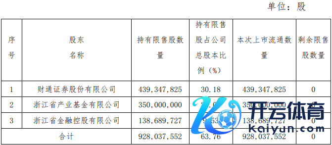 这次解禁推动共三位,辩认为东财通证券股份有限公司、浙江省产业基金有限公司、浙江省金融控股有限公司,为永安期货第一、二、四大推动。