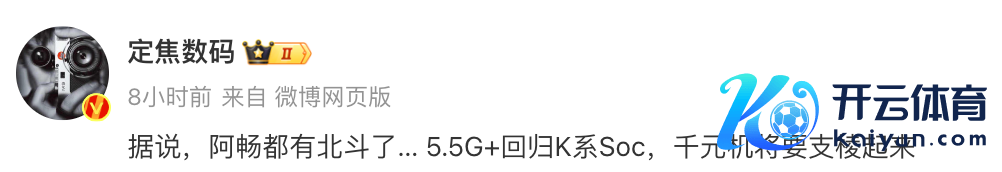 跟着时代的鼓动,并吞位博主在今天最新的爆料中再次提到:“外传,阿畅王人有北斗了… 5.5G+转头K系Soc,千元机将要支棱起来”。